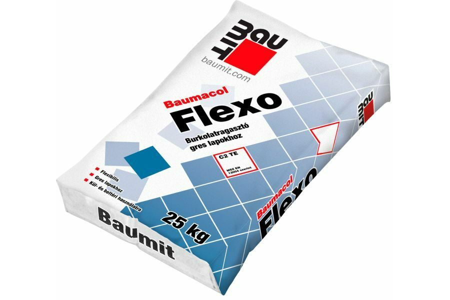Cementbázisú, por alakú, flexibilis, élelmiszerbarát, fagyálló, vékonyágyazású ragasztóhabarcs.