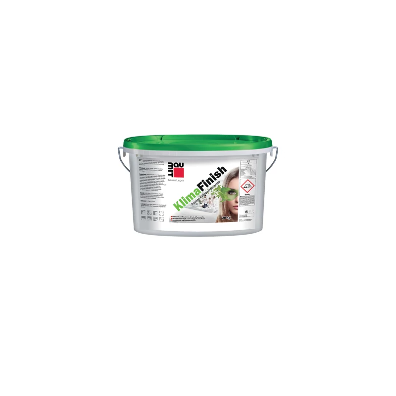 - A Baumit KlimaFinish felhasználásra kész, pasztaállagú. Használat előtt a vödörben alaposan keverd fel egy lassú járású keverővel vagy kézzel, amíg homogén, krémes állagú nem lesz.