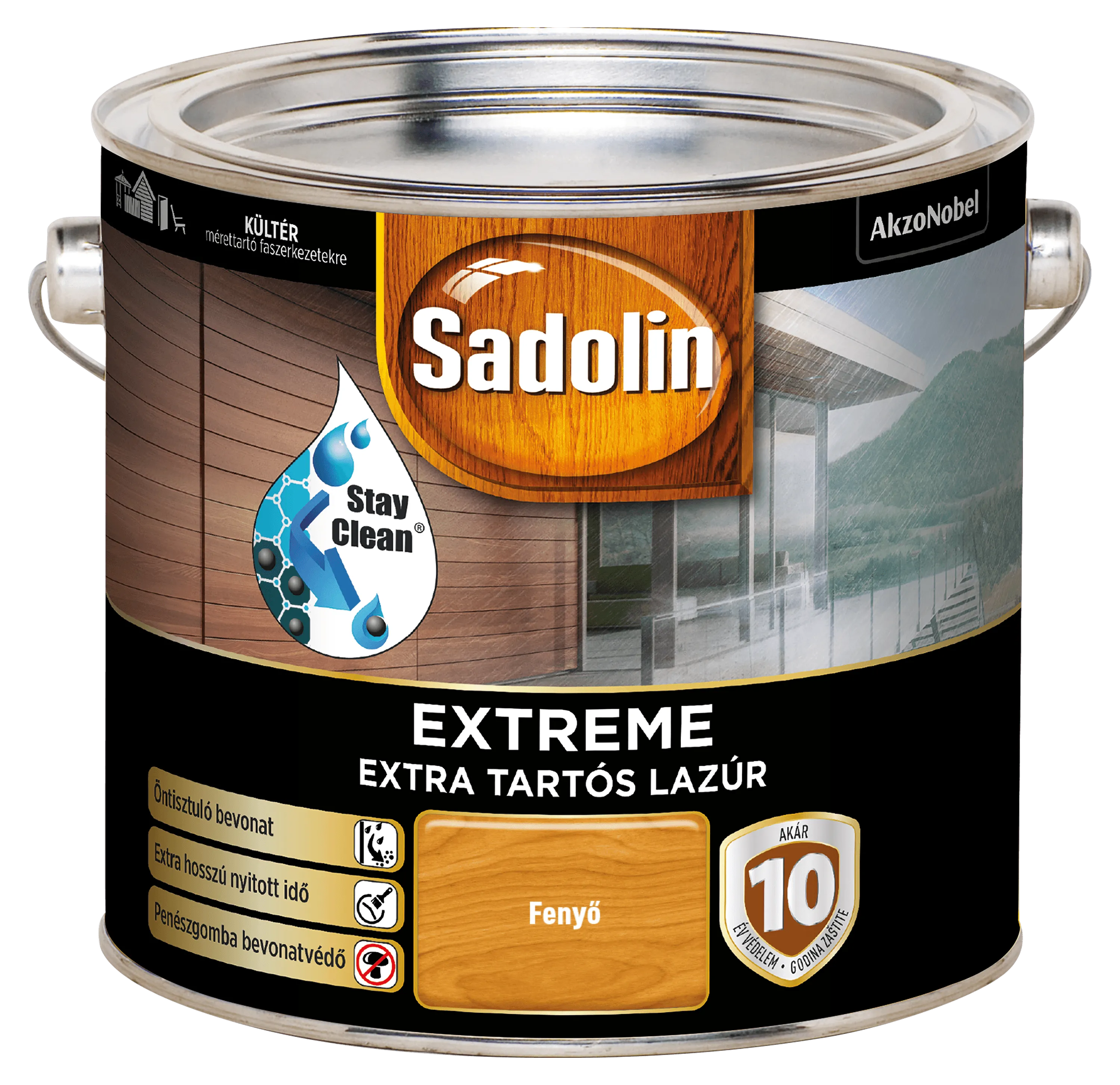 A Sadolin Extreme vastaglazúr különösen ajánlott mérettartó faszerkezetek, mint például ajtók, ablakok, zsalugáterek, homlokzati burkolatok, oromdeszkák és erkélykorlátok kezelésére. Ezek a szerkezetek folyamatosan ki vannak téve az időjárás káros hatásainak, ezért kiemelt fontosságú a megfelelő védelem. A termék mélyen beszívódik a fába, kiemelve annak természetes szépségét, miközben vízlepergető és UV-álló bevonatot képez. Ezáltal megvédi a fát a napfény káros hatásaitól, a nedvességtől és az időjárás viszontagságaitól.. A Sadolin Extreme emellett ellenáll a penészgombának és a biokorróziónak is, így komplex védelmet nyújt a fa számára. A Sadolin Extreme használatával akár 10 évig is élvezheted a fa felületek szépségét és tartósságát.
