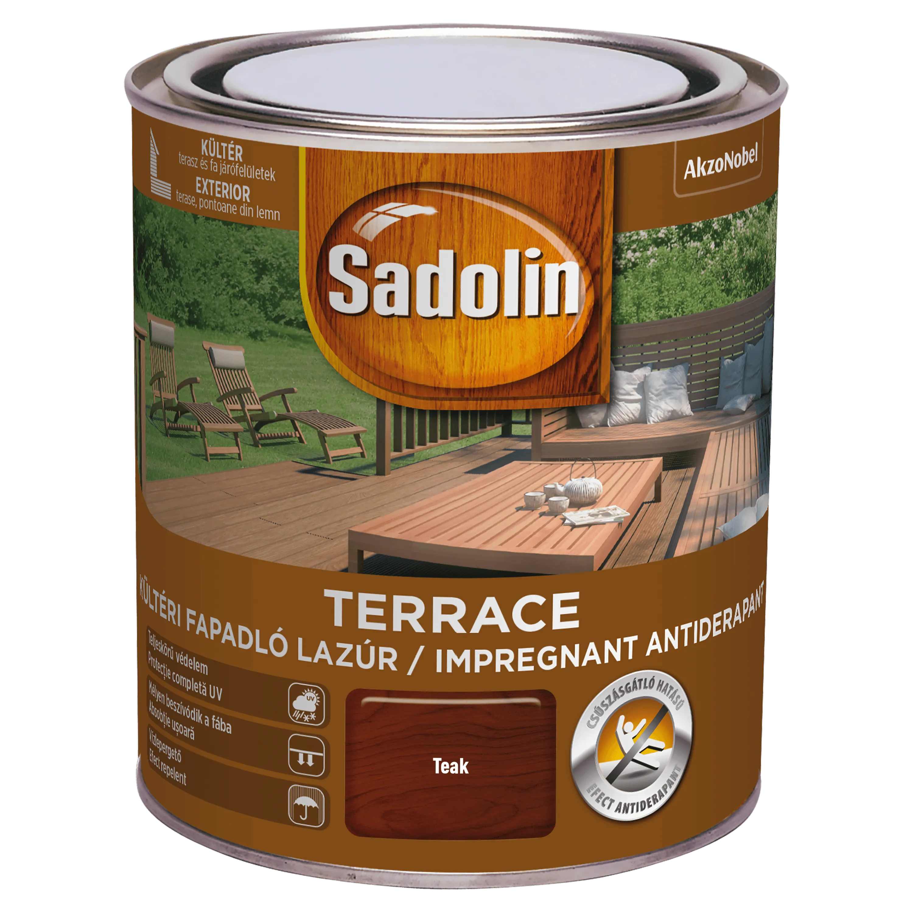 Sadolin Terrace Teak, 0.75 liter – Csúszásgátló lazúr kültéri fa járófelületekhez