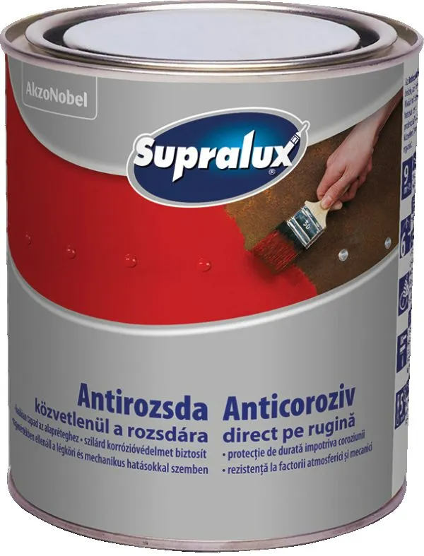 Ez az alkidgyanta bázisú festék fényes és kalapácslakk változatokban is elérhető, így választhatsz a klasszikus fehér és feketétől a metálos, ezüst vagy szürke árnyalatokig. A Supralux ANTIROZSDA könnyedén felhordható ecsettel vagy hengerrel, és két-három rétegben tökéletes fedést és tartós felületet eredményez. Ha stabil, nem leváló rozsdásodás van a felületen, ez a termék áthidalja a szokottnál nagyobb előkészítési munkálatokat, így mind időt, mind költségeket csökkenthetsz.