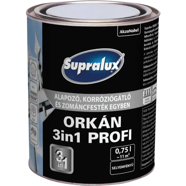 - Szükséges külön alapozás a festék alá? Nem, a SUPRALUX ORKÁN 3in1 PROFI már tartalmazza az alapozó és korróziógátló tulajdonságokat. Közvetlenül felvihető a megfelelően előkészített fémfelületekre. Kivételt képeznek az alumínium felületek, ahol a Supralux Tiszakorr vas és könnyűfém alapozó használata ajánlott a tökéletes tapadás érdekében.